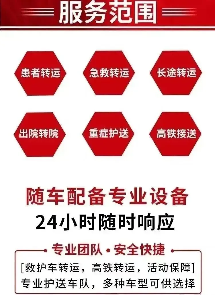 车辆专业正规:所有车辆均为正规医疗转运车,标志清晰,设备齐全,并定期维护。