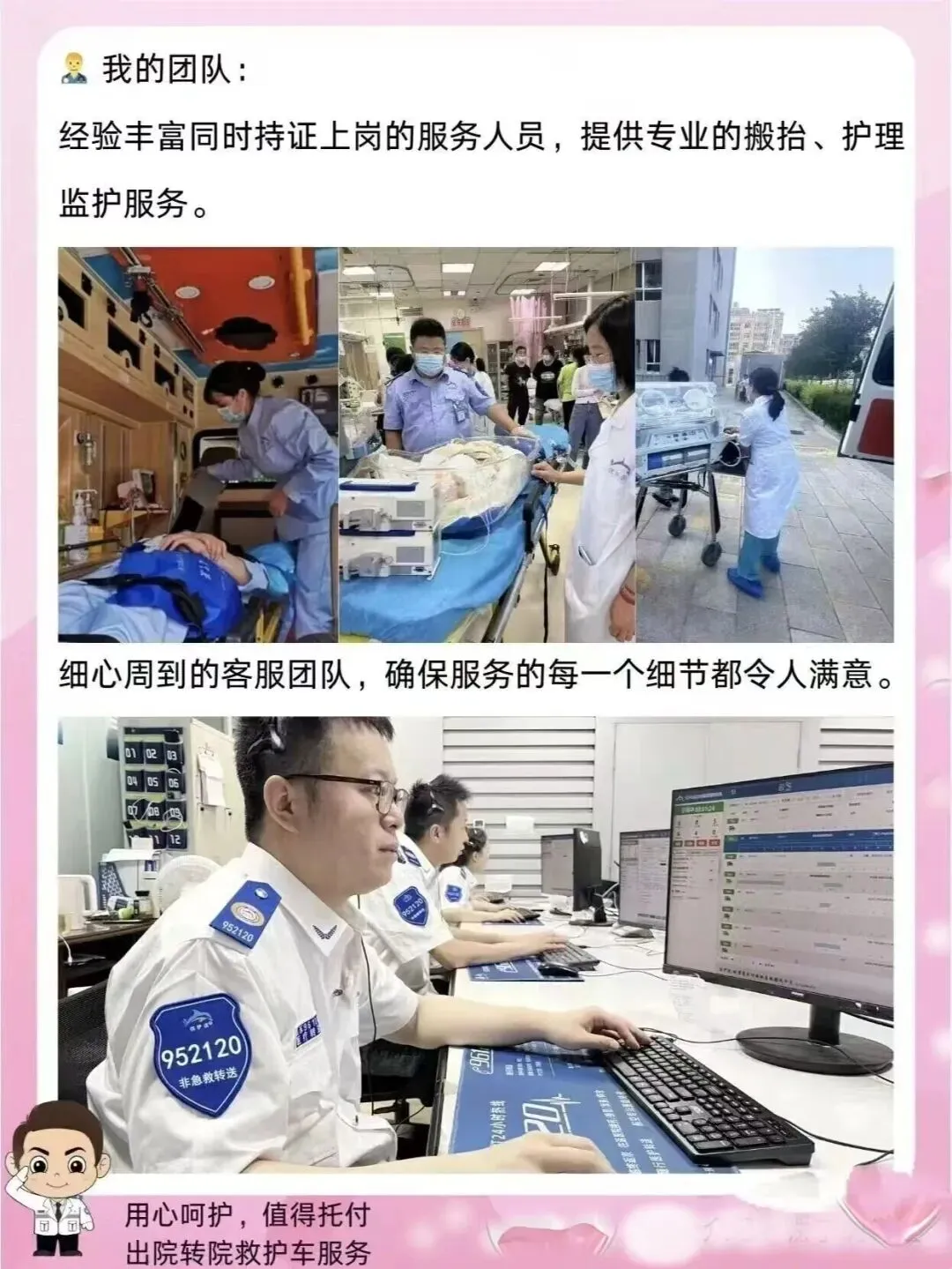 团队持证上岗:随车医护人员均具备专业资质,经验丰富,处理得当。