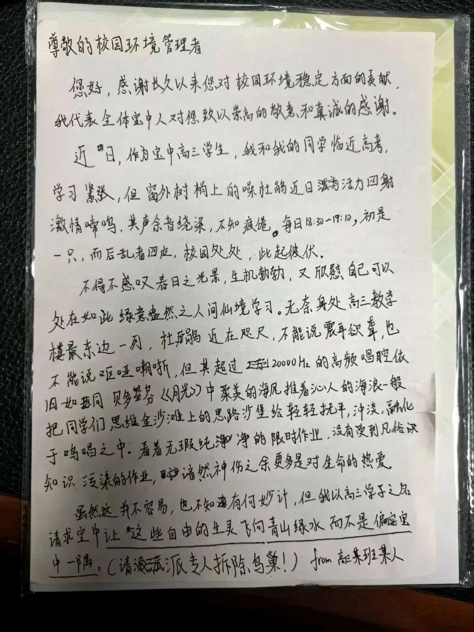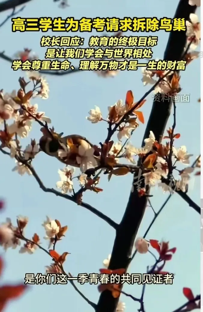 按理说,学校面对高三学生的备考诉求,多半会顺着来——不就是个鸟巢嘛,找人挪走就是,别耽误孩子考大学,这是 most 重要的事。