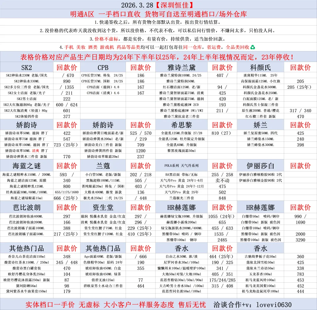 2026.3.28深圳恒佳美妆结算价(明通一手档口直收)