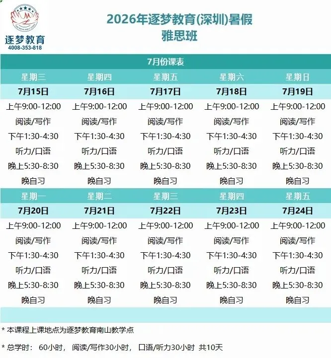 别慌!专为深圳家长和孩子定制的「暑期雅思专项封闭集训营」来了!