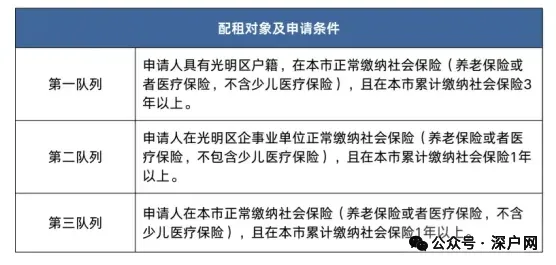 第一队列(优先):光明户籍 + 满3年社保,可优先选择三房户型,中签几率最高。