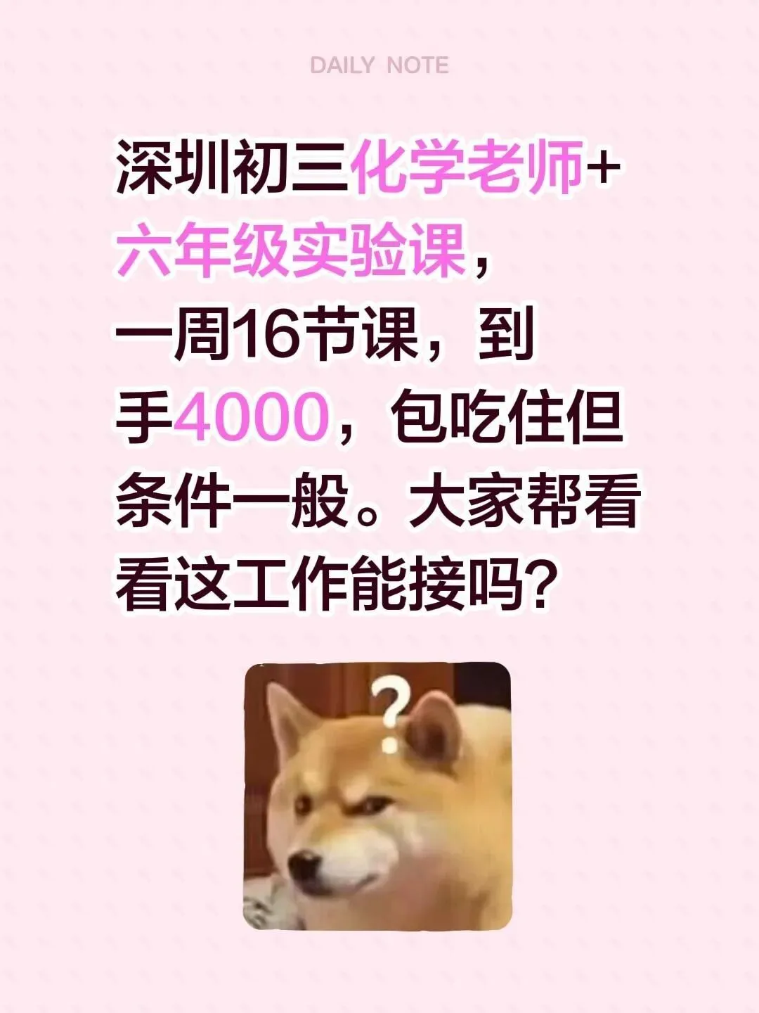 现在的就业环境这么差了吗?主科化学老师税前5000,到手4000,都有人在问要不要接offer?而且这个 offer 还是在深圳?这个收入不知道是不是包吃住,如果不包,一个月下来就存了公积金呗,如果不是穷得发疯或者想积累经验,不建议接,当然可以考虑干教培,一样可以积累经验,长远看还是建议还是考公考编。