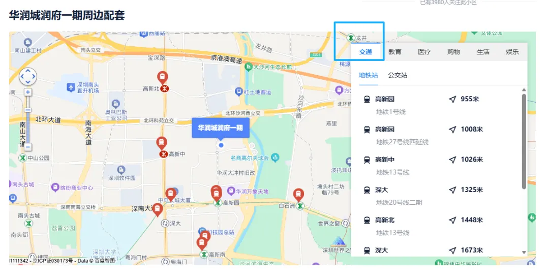 项目交通:周边交通网络极为发达。临近北环大道、深南大道等城市主干道,自驾出行可快速畅达深圳各区。公共交通也十分便利,距离 1 号线高新园站约 [953] 米 ,步行即可轻松抵达。此外,还有多条公交线路在附近设有站点,无论是前往福田、罗湖等中心区域,还是前往宝安、龙岗等其他区域,都能快速便捷地到达。