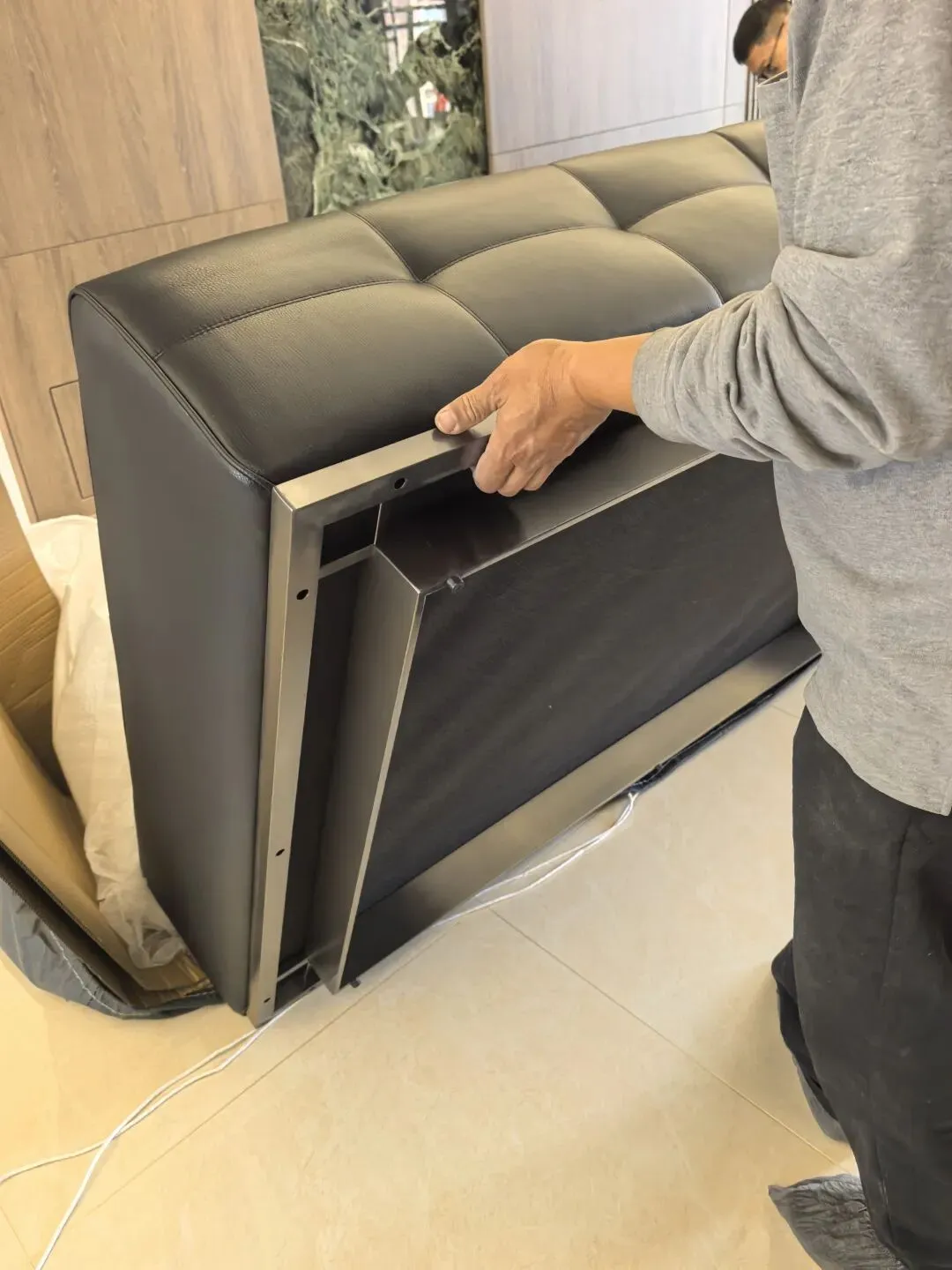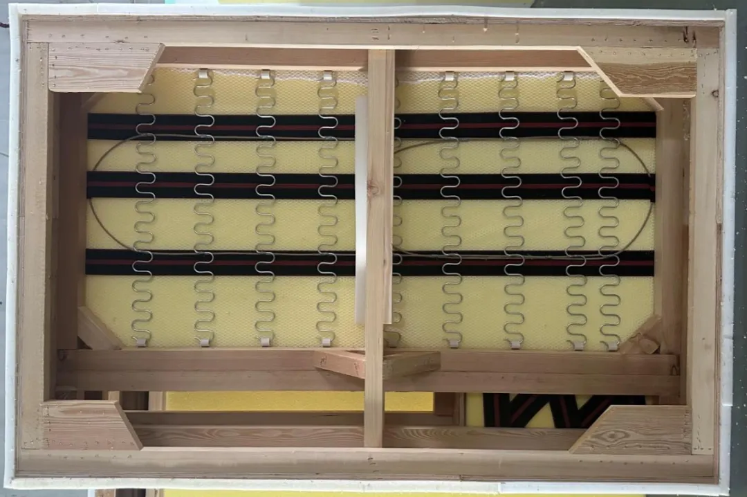 内部工艺采用了进口俄罗斯落叶松实木方作为内架材料。在不同支撑点上,我们选用了不同规格的落叶松实木方以确保沙发结构的稳定性和承重能力,并用进口红黑橡筋绷带和镀锌弹簧组合。