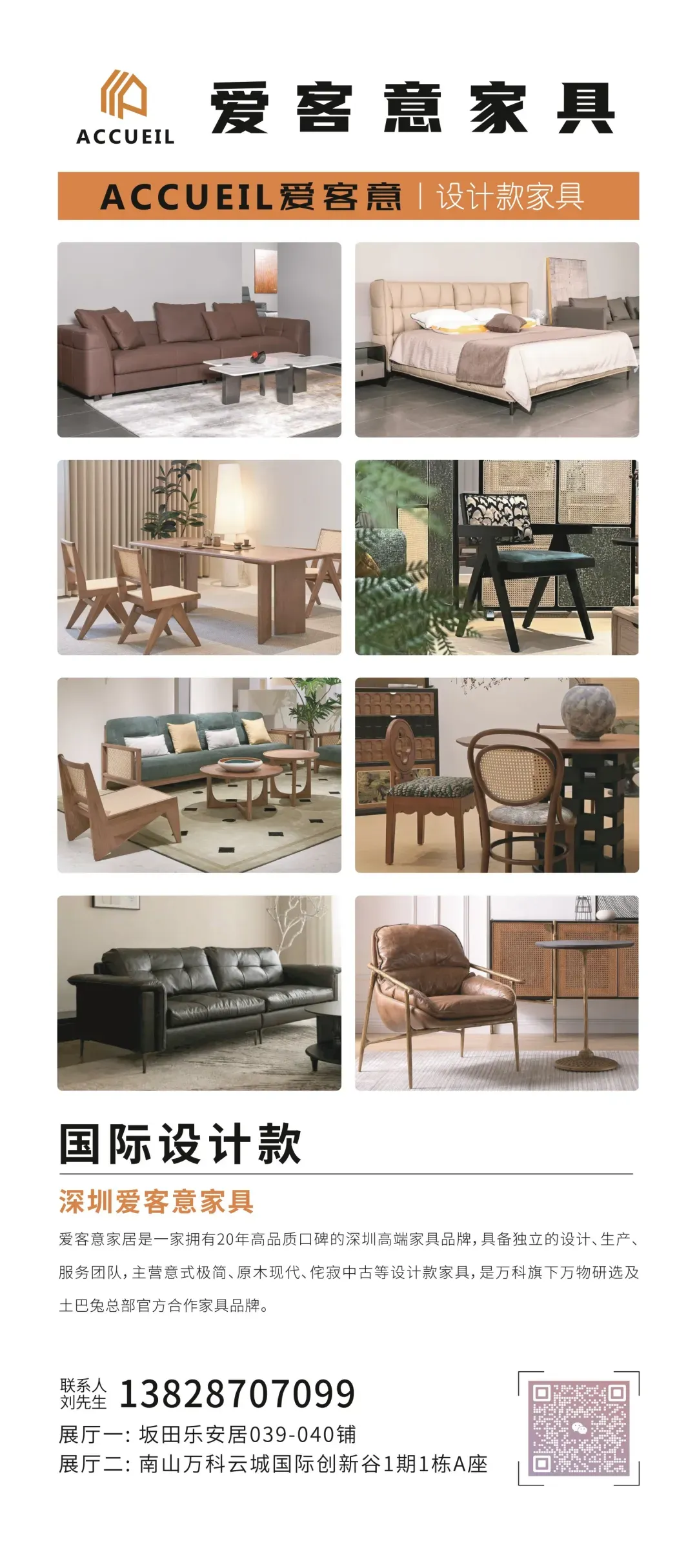 深圳市爱客意家居有限公司,是一家拥有20年高品质口碑的深圳高端家具品牌,具备独立的设计、生产、服务团队,主营意式极简、原木现代、侘寂中古等设计款家具。万科旗下万物研选合作家具品牌。
