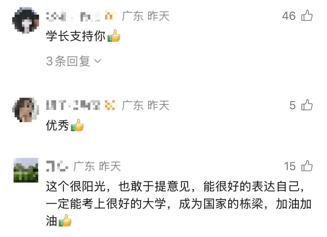 写信的高三学生曾同学也在个人账号回应了网友关切,他表示,“感谢校长的悉心教导和网友的耐心回复,让我对生命与自然有了新的思考。”