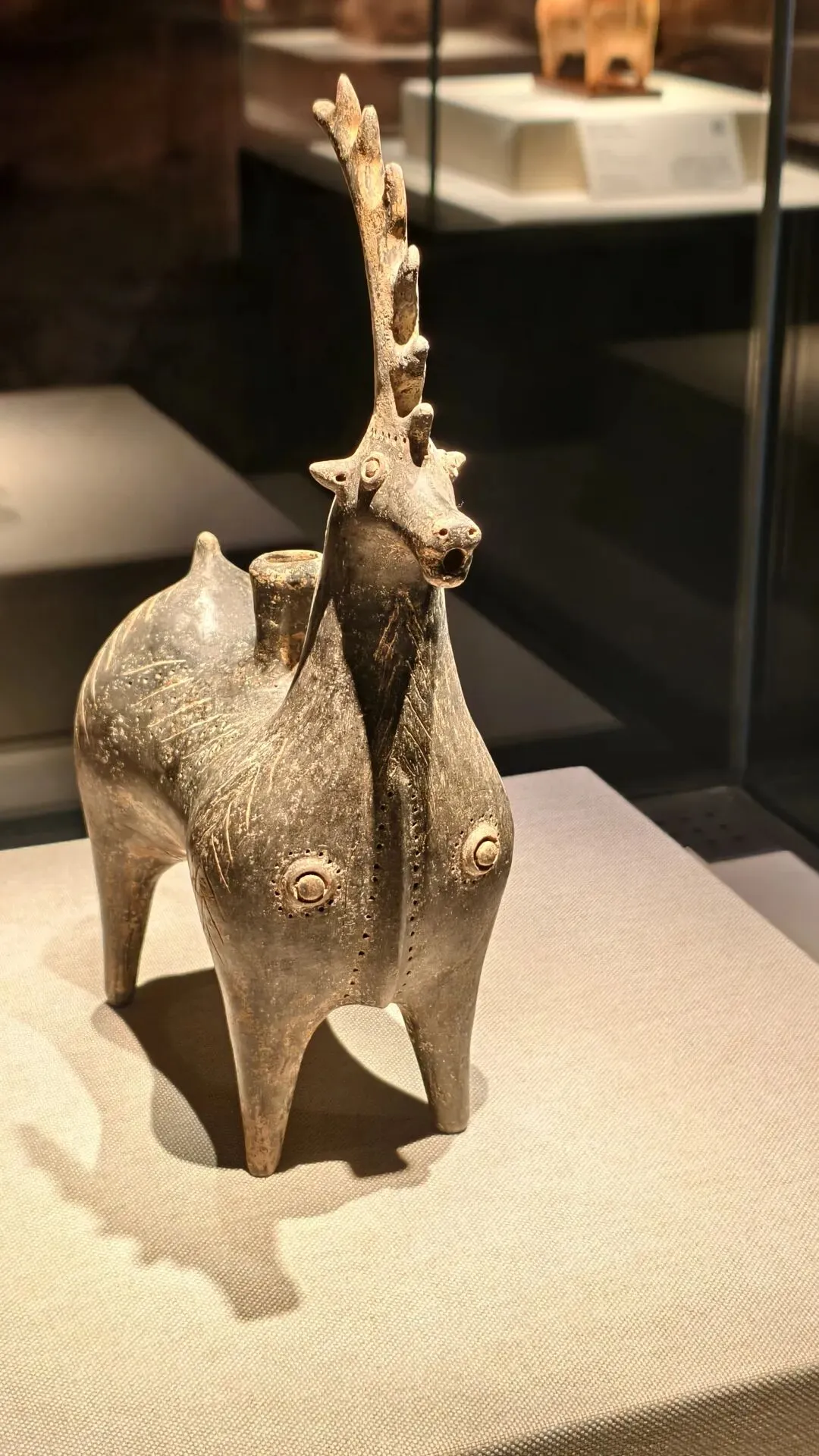 - 陶鹿:身姿挺拔,鹿角分叉,身上刻有纹饰,兼具实用(储水)与审美价值。