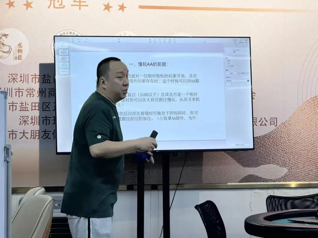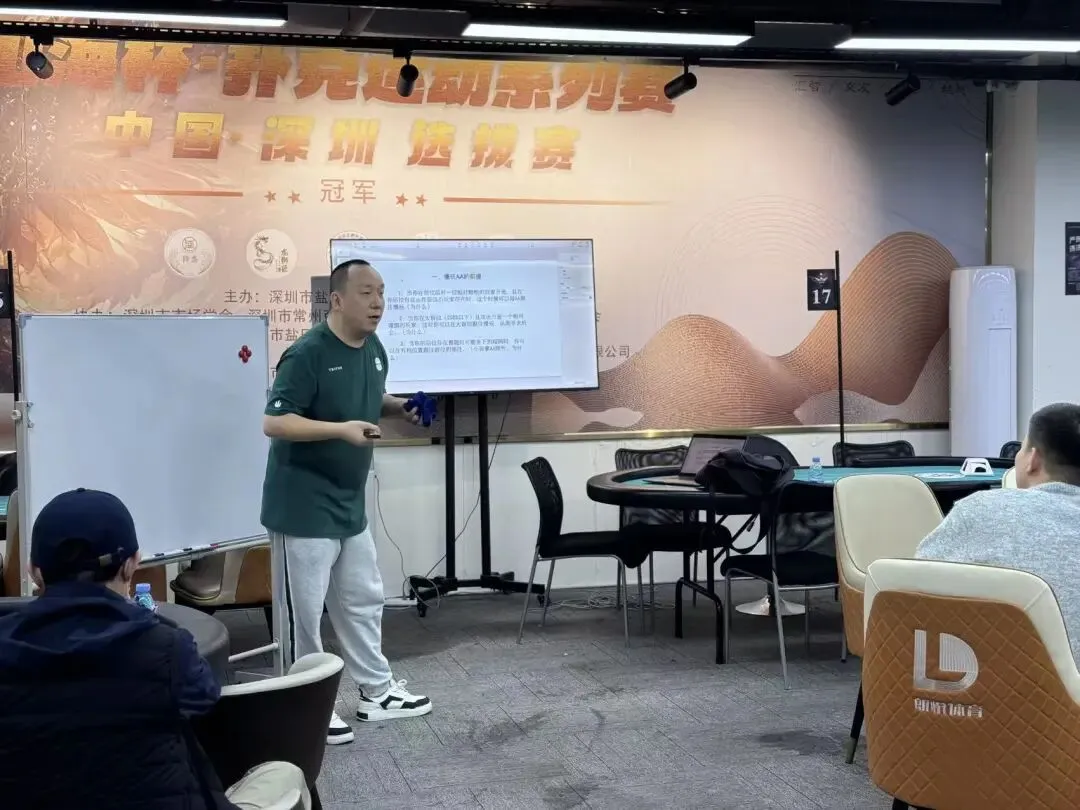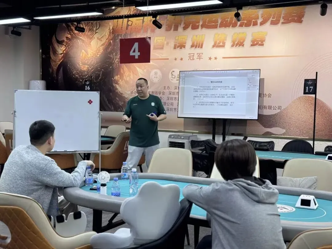 今天中午12:00,备受期待的扑克公开课在山海杯赛场旁的正新扑克运动协会正式开讲!扑克圈内知名亚洲赛事解说“教练”,为现场众多扑克爱好者带来了一场干货满满的策略分享。