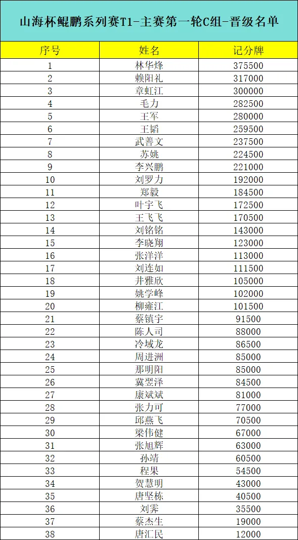 山海杯鲲鹏系列赛主赛C组赛况统计:
