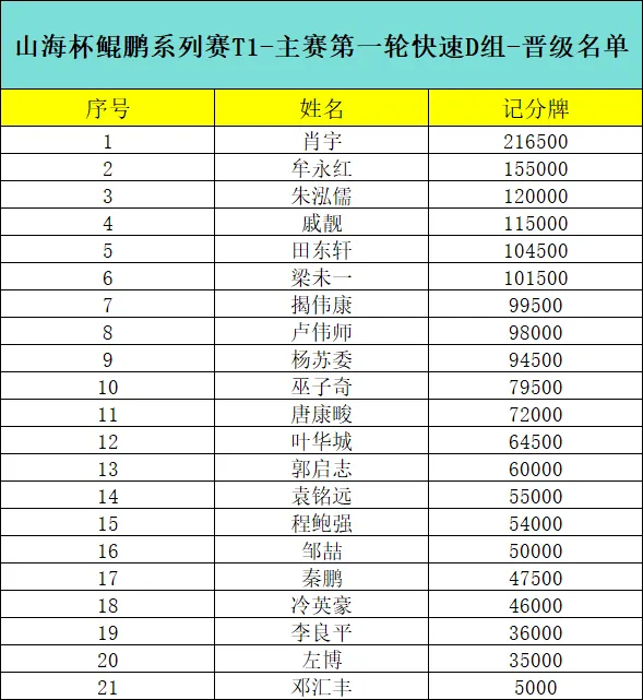 山海杯鲲鹏系列赛主赛D组赛况统计:
