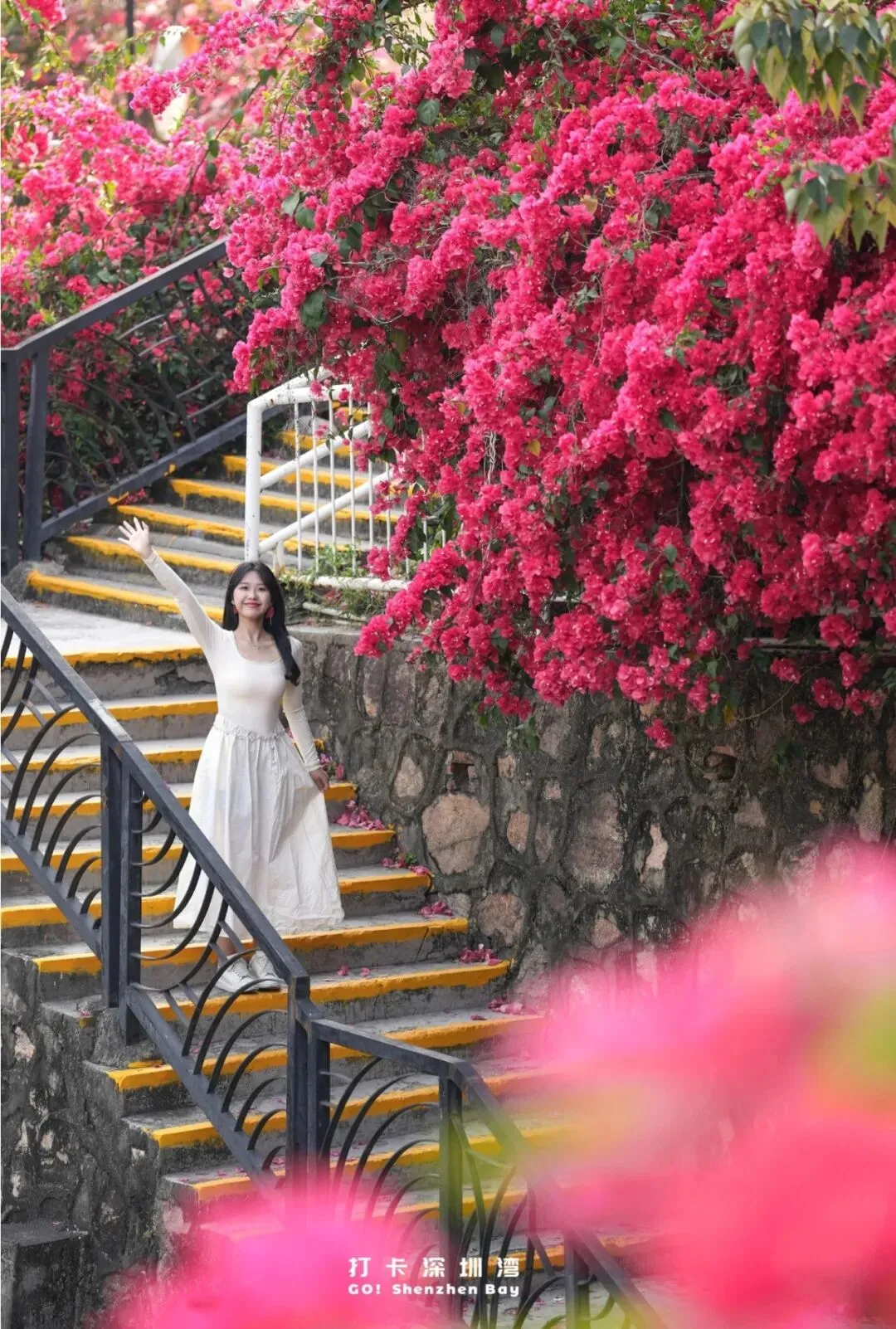 开满三角梅的枝蔓是天然的画框,你只需踏入这片光影,便会成为画中人。