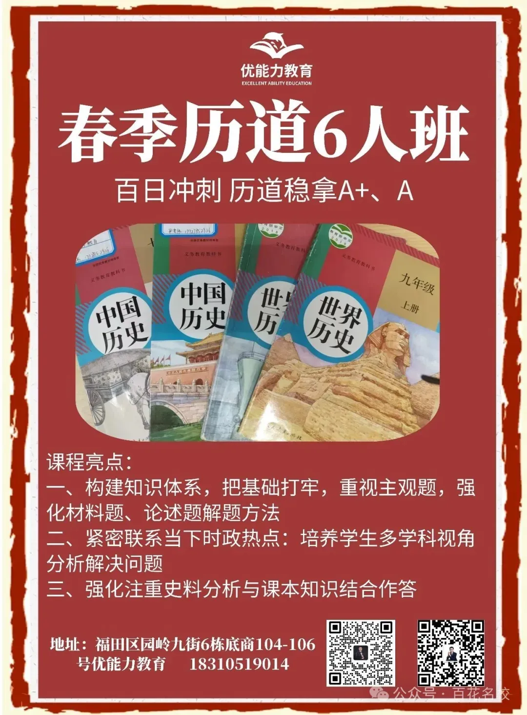 教师团队资深教学团,原一线教师团队和前深圳TOP机构金牌骨干师资组成,平均教龄8年以上,无应届生,老师经验丰富,精准把握考点趋势,所带学生家长满意度和提分率95%以上。聚焦于“知识体系和思维的建构”,侧重在教育的底层逻辑。中考命题越来越反套路,只有掌握底层逻辑,才能以不变应万变。