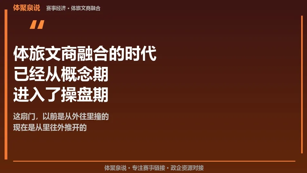 对做赛事的人来说,这是一个信号:体旅文商融合的时代,已经从概念期进入了操盘期。