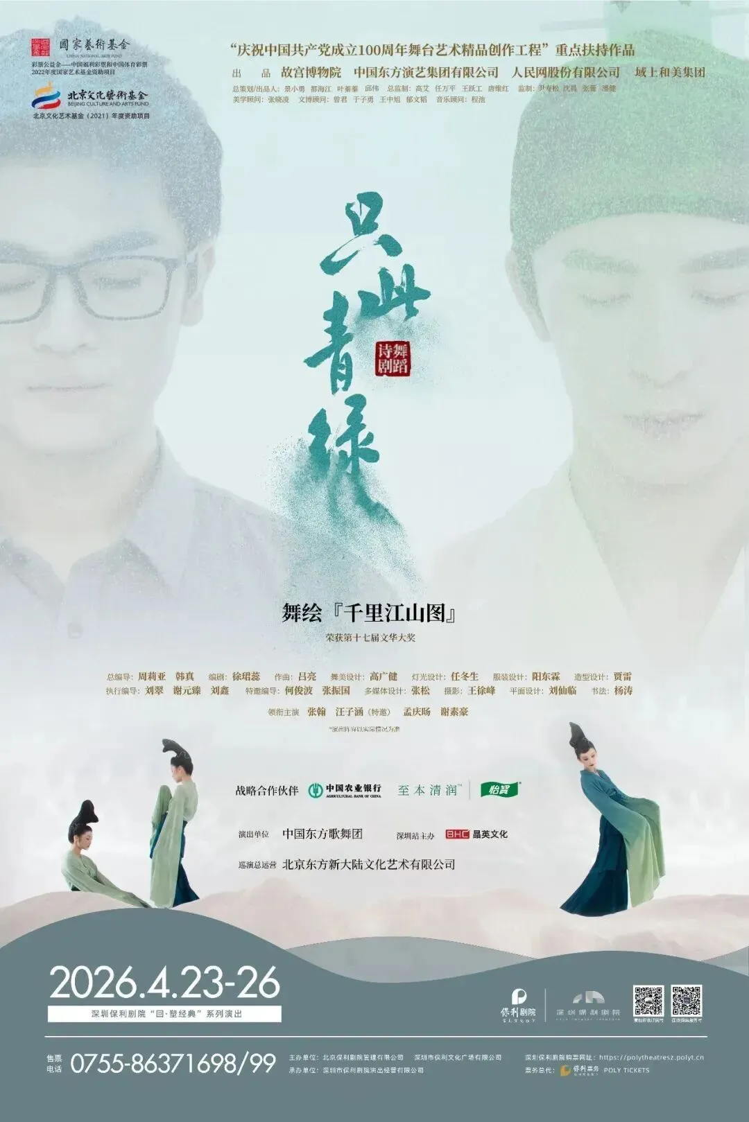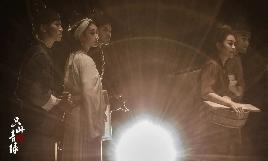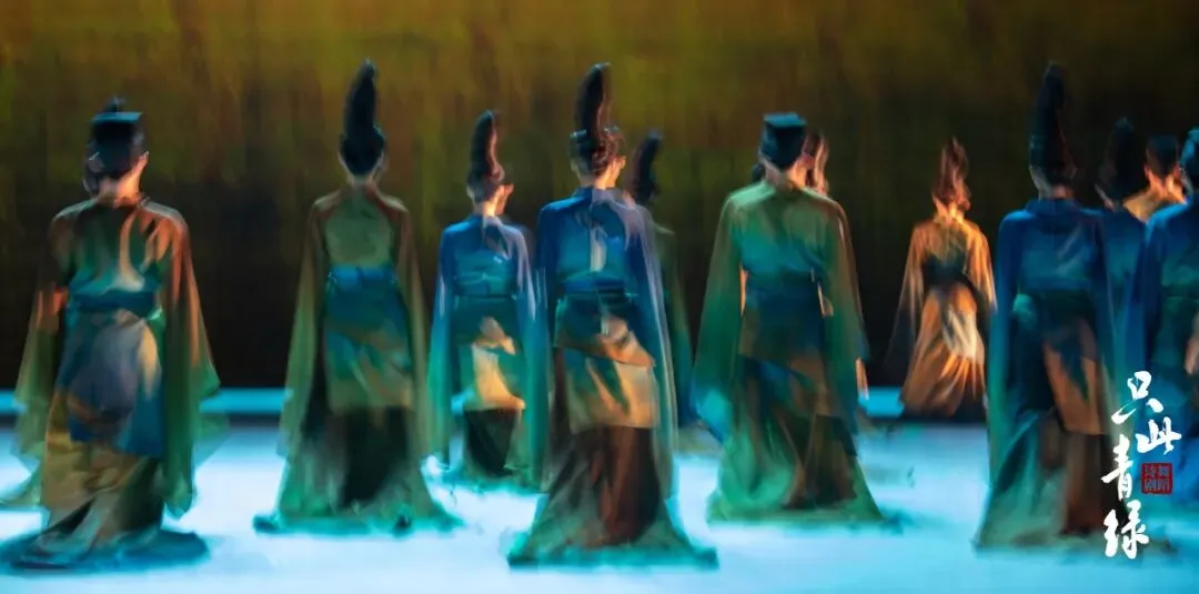 舞蹈诗剧《只此青绿》,讲述了《千里江山图》即将展出,一位故宫研究员(展卷人)穿越时空,来到千年前希孟即将完稿之时,观众也跟随展卷人的步伐,循着“展卷、问篆、唱丝、寻石、习笔、淬墨、入画”的篇章纲目,进入希孟的绘画世界,徜徉在富有传奇色彩的中国传统美学意趣之中。
