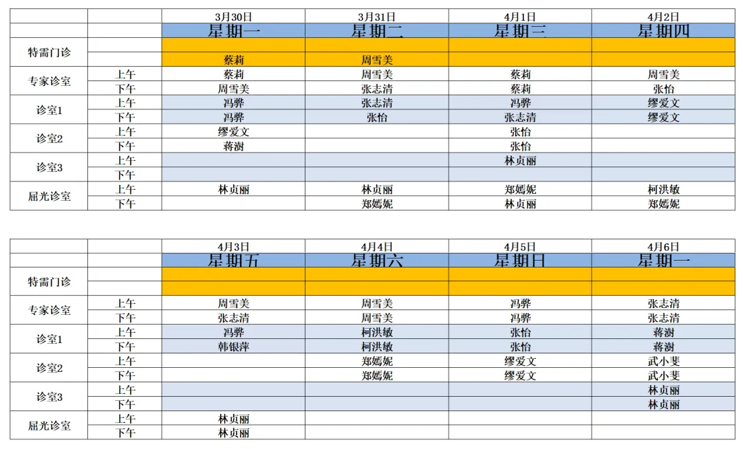 >2026年3月30日~4月6日深圳大学总医院眼科医生出诊信息
