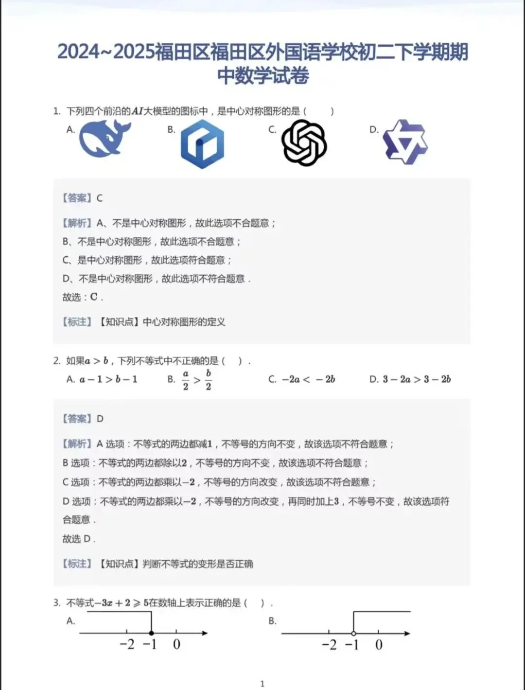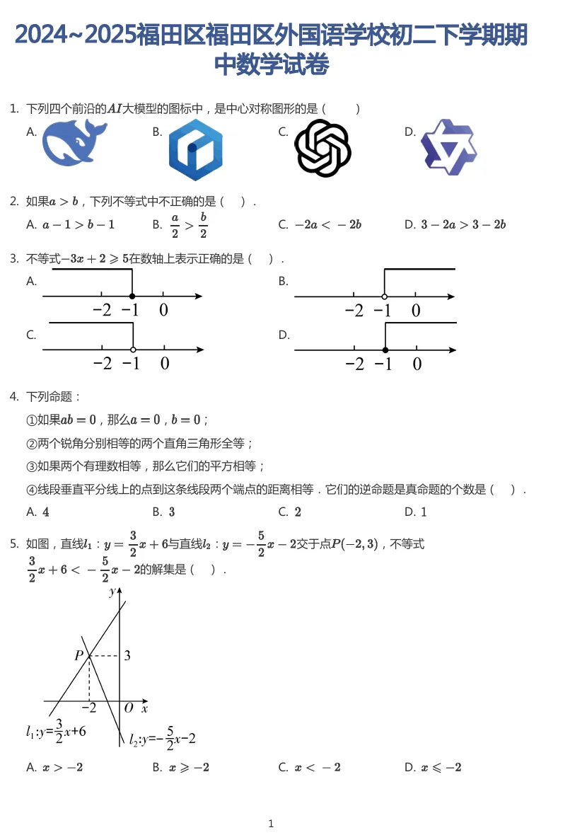 2026深圳初中数学八年级下册外国语学校数学试卷