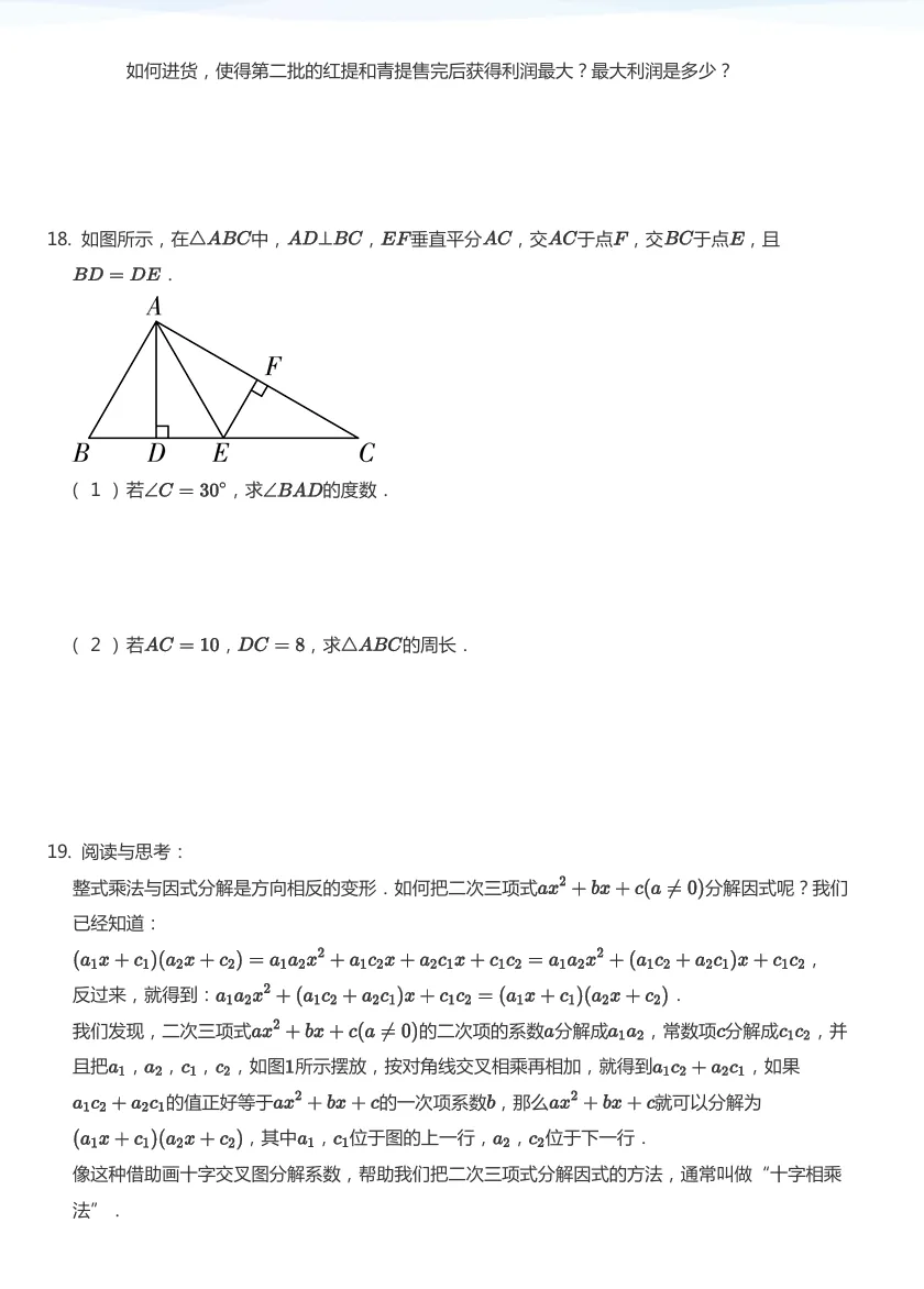 >2026深圳初中数学八年级下册外国语学校数学试卷