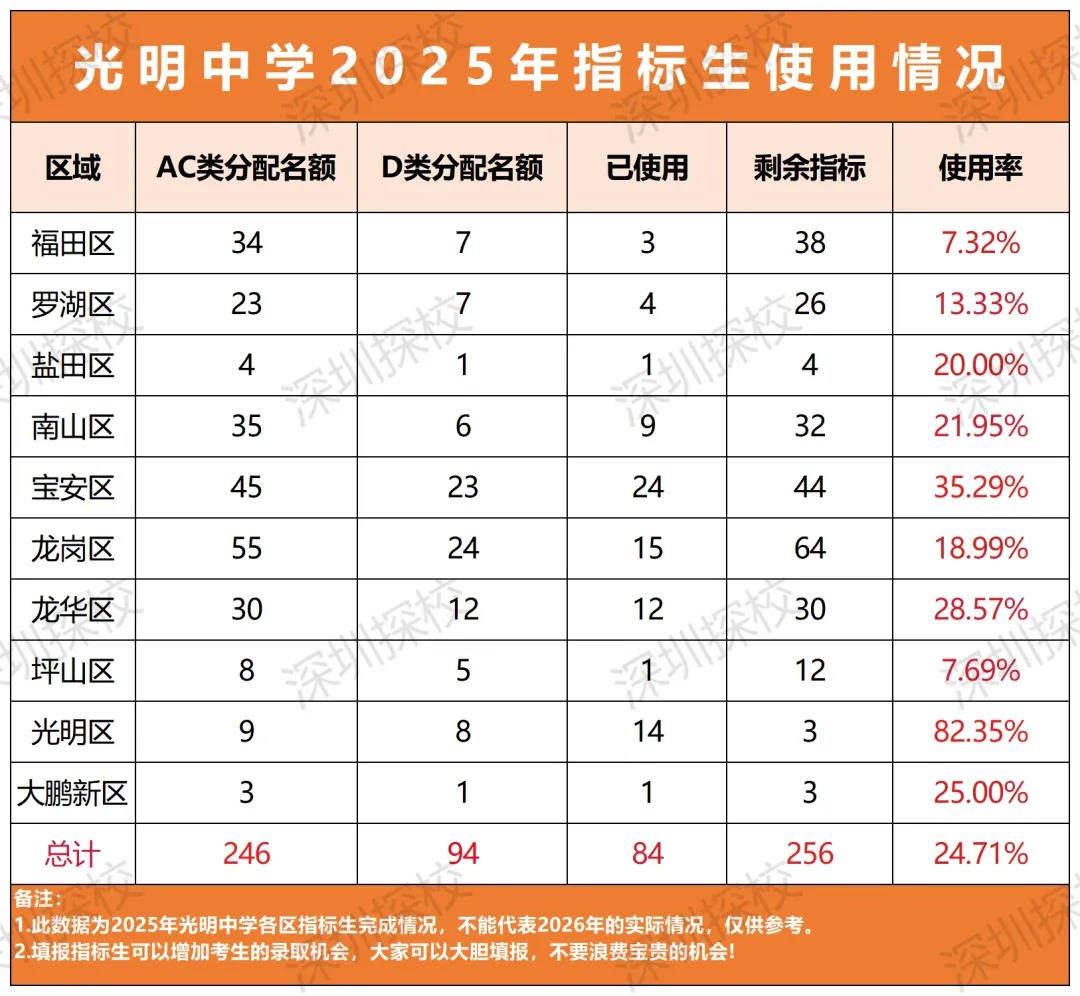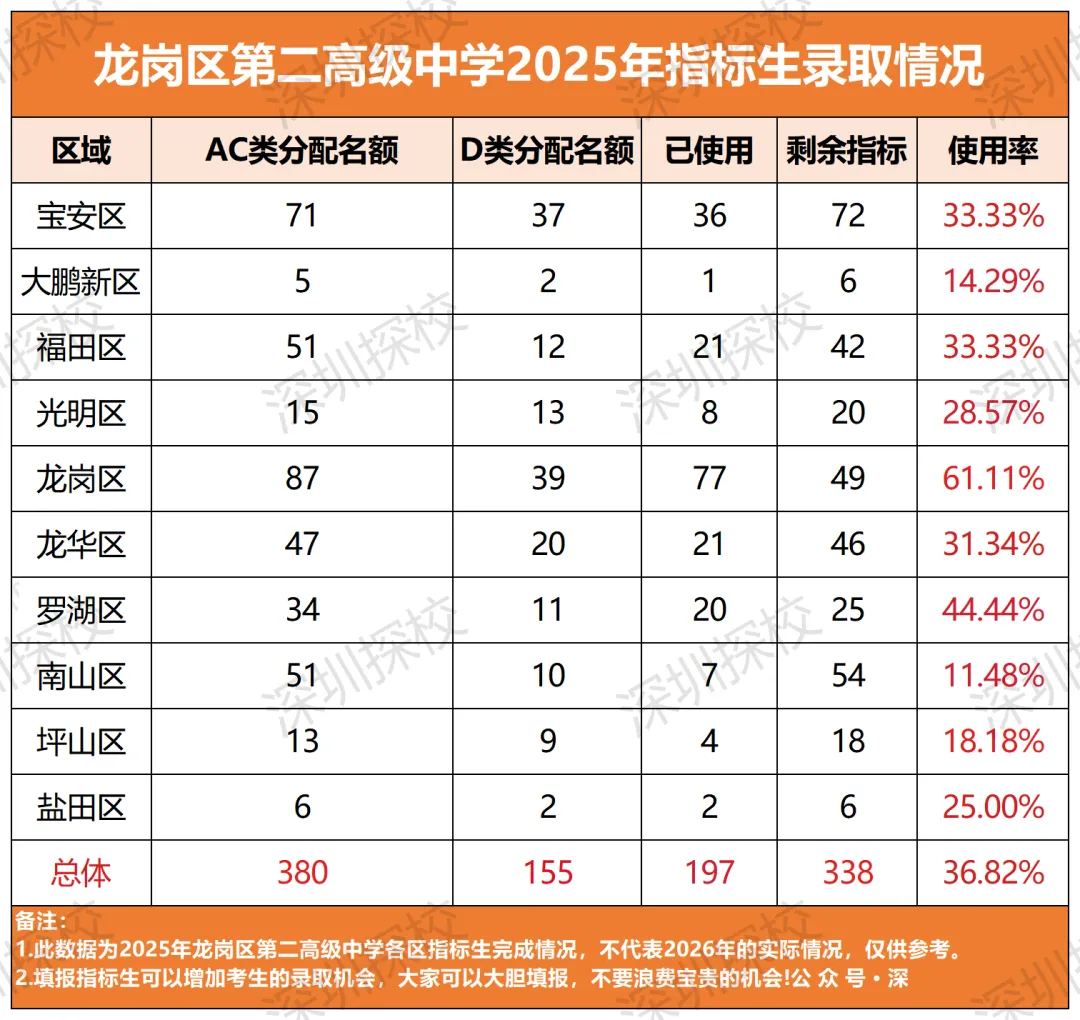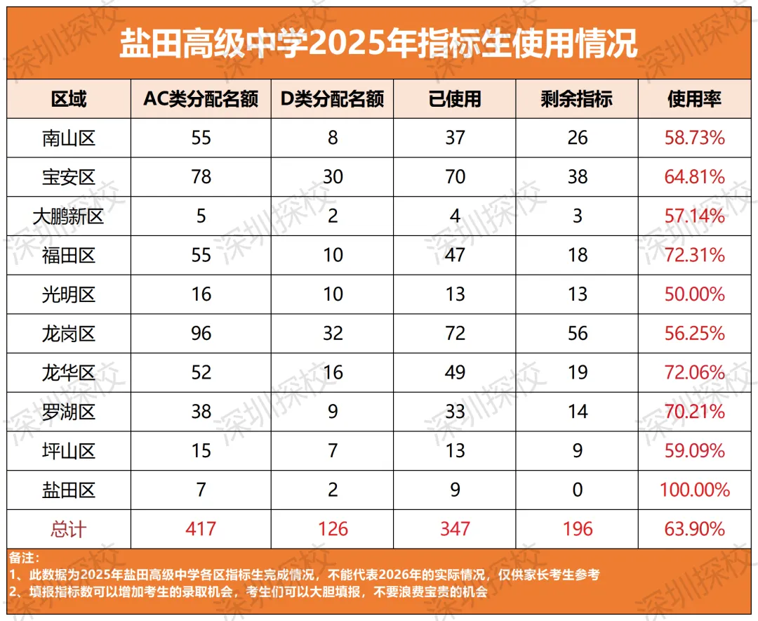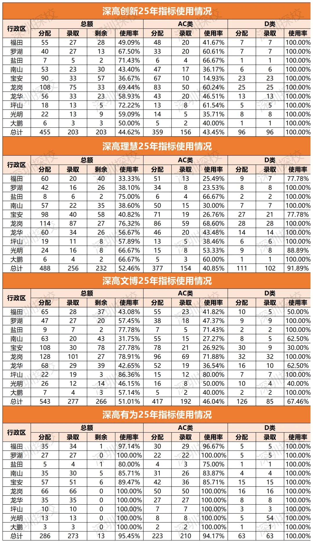 指标生往往占深圳市公办高中一半的录取名额,也是一种冲高的途径,可以实现降分录取,所以了解一下往届的分配名额还是有很重要的意义的。