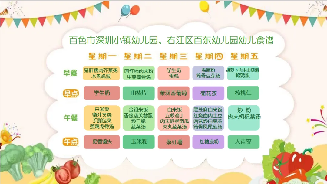 因天气等不可控因素、导致蔬菜水果等原材料会出现市场供给问题,极少情况下会出现实际操作中更换食谱现象,敬请家长朋友们理解。