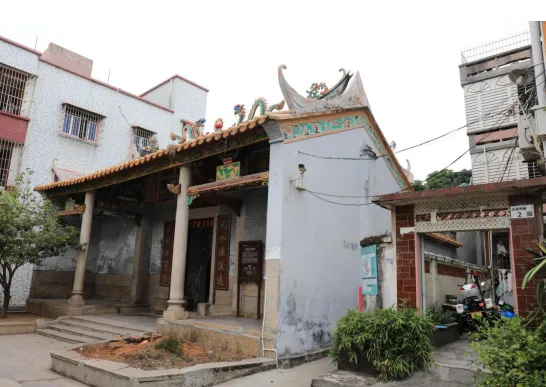 ●宝安区福永庄屋村:明代从皇岗分迁而来,这里的庄氏宗祠始建于明洪武四年(1371年),是深圳现存最早的宗祠之一。宗祠为砖木石结构,三开间两进一天井两廊房布局,面阔11.625米,进深20.265米,面积约236平方米。梁架、驼墩、雀替等构件雕刻精美,檐壁绘有人物故事彩绘,前堂屋脊的“二龙戏珠”灰塑栩栩如生。2012年被列为宝安区不可移动文物,默默诉说着庄氏的百年沧桑。
