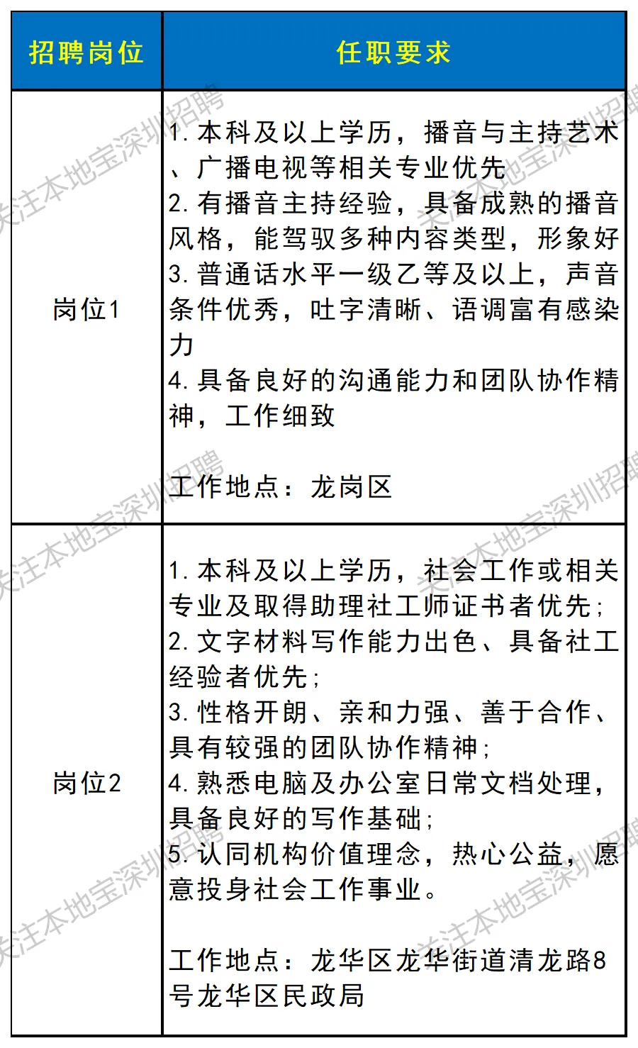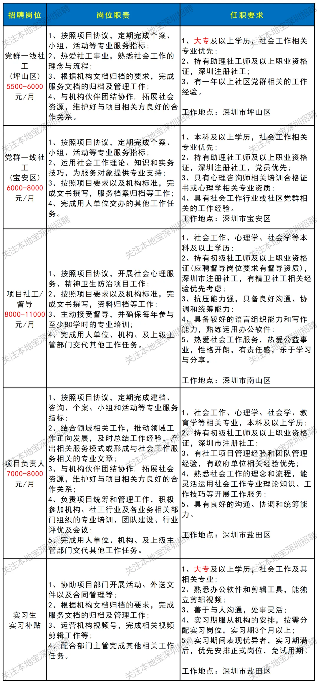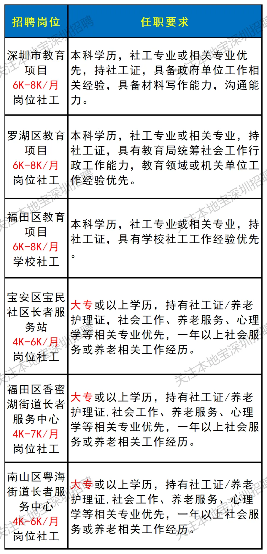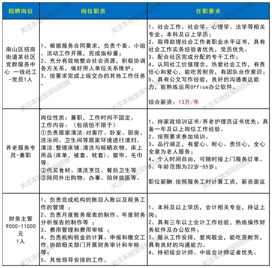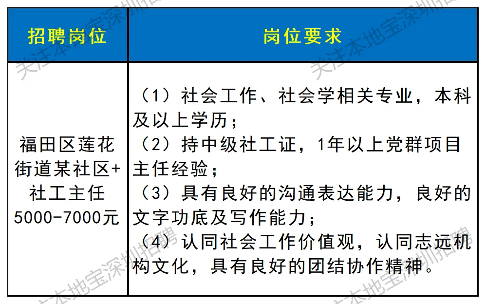 ✅招聘岗位:福田区莲花街道某社区+社工主任,具体要求如下图所示