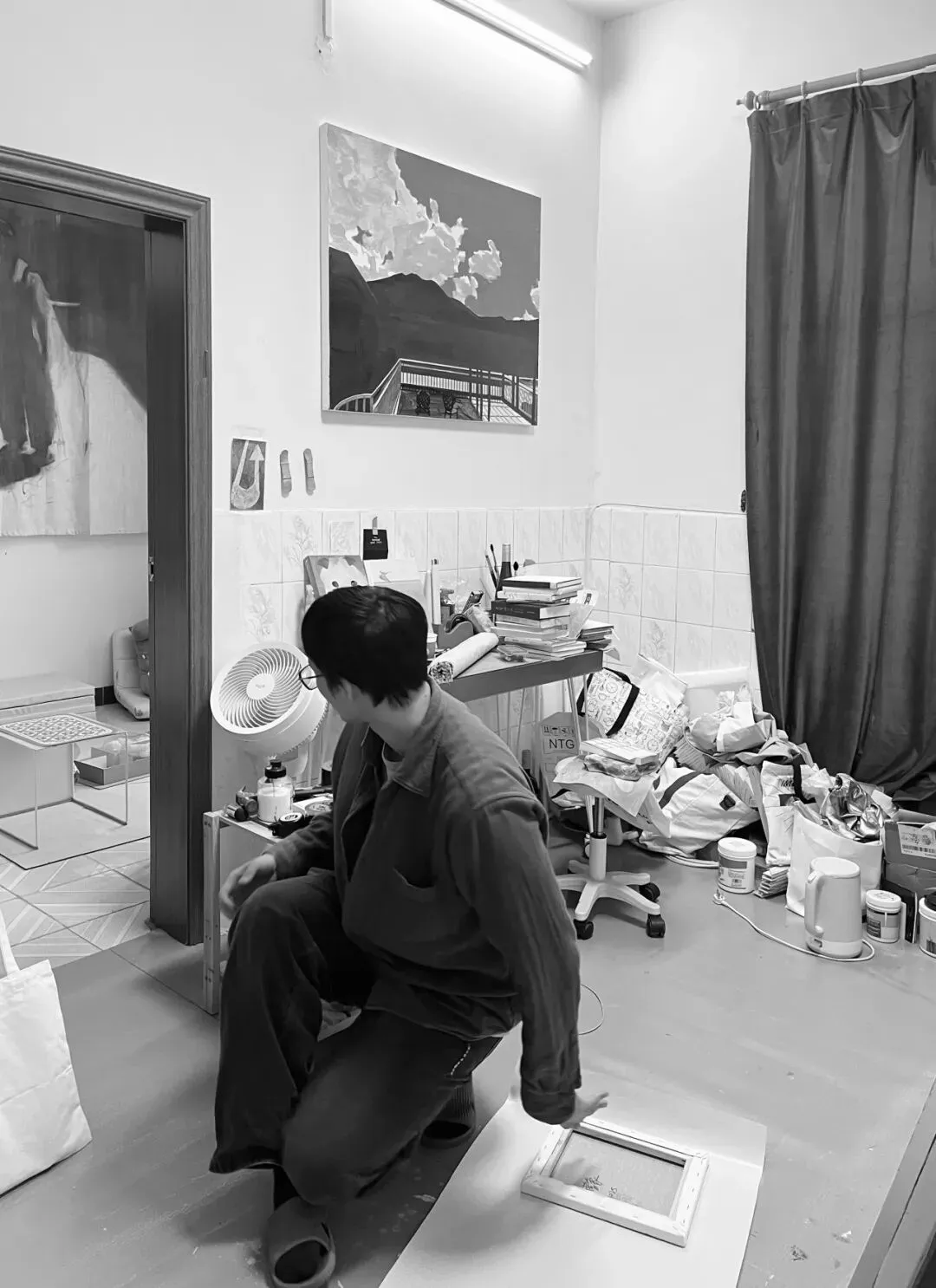 相较于展览现场,工作室里呈现了作品背后的生成状态,这些过程中的灵感有时候更能激发对话和讨论。这其实也是我试图在创作和展览中呈现的,即现实生活中的感觉与艺术作品的兼容。整个工作室周边的环境也是我的素材拾取库,有一些我绘画中呈现的场景或对象可以直接在周边被看到。