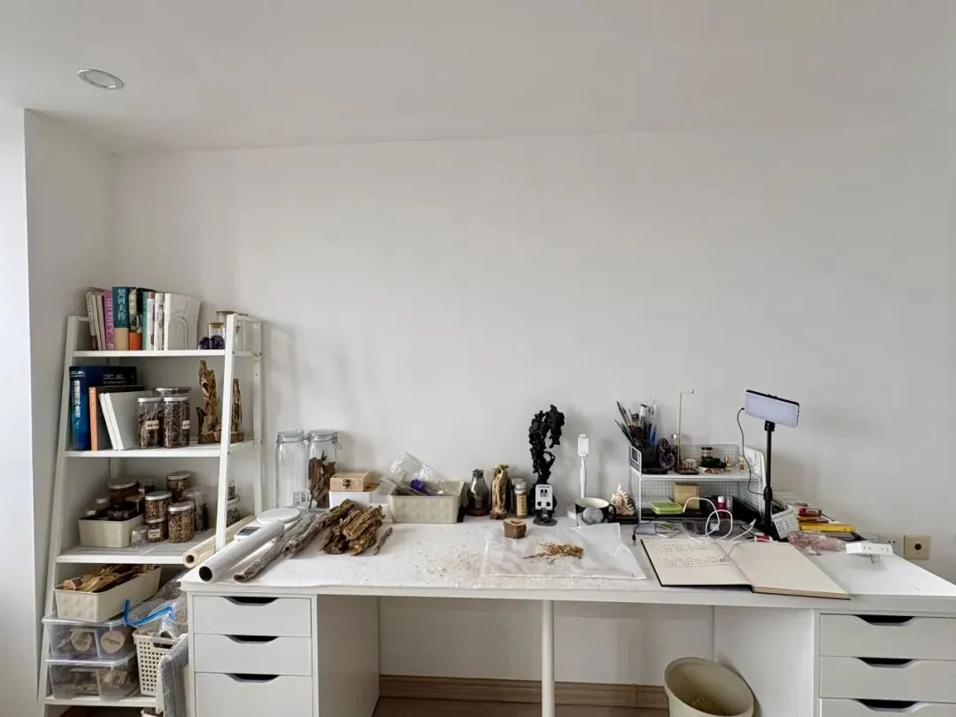 我是艺术家王顺瑜,以绢本水墨为主要的创作媒介,此外我也对传统手工艺、民俗及带有传统神秘主义色彩的文化感兴趣。工作室不仅是我研究和探索材料的场所,同时也是我展示和囤积个人收藏的场域。因此不同的角落里陈列摆放着我从不同文化,地区带回来的物件。这些不仅仅是我个人喜好具像化的呈现,同时也是创作灵感的来源。
