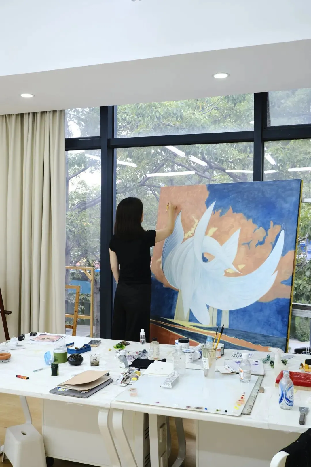 向公众开放工作室类似于晒太阳,将个人内省的私空间打开给不确定的受众。让大家了解艺术家创作生活的日常和真实状态,而非聚光灯下的表演,也使本人在与受众交流的过程中感受被凝视的状态。我不认为开放工作室会影响我的创作思考和工作方法,在这方面,我只是倾听和感知被观看。当然,我希望观众能从我的日常状态中看出我的思想或画面以外的东西。