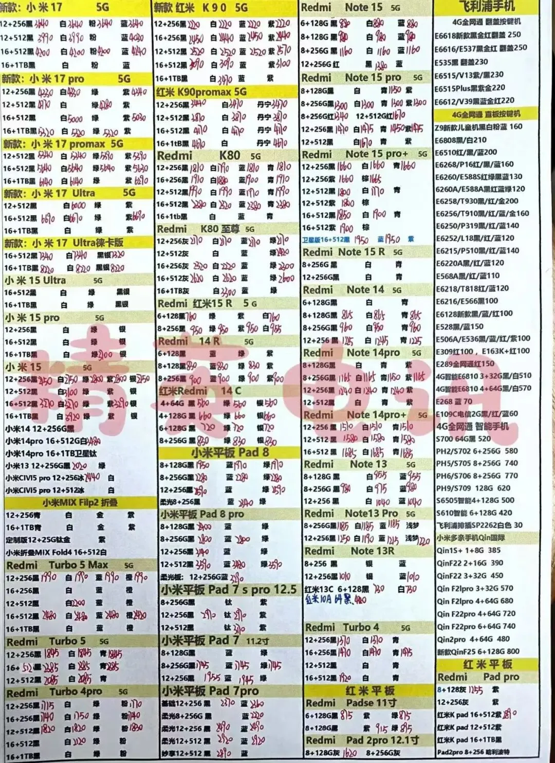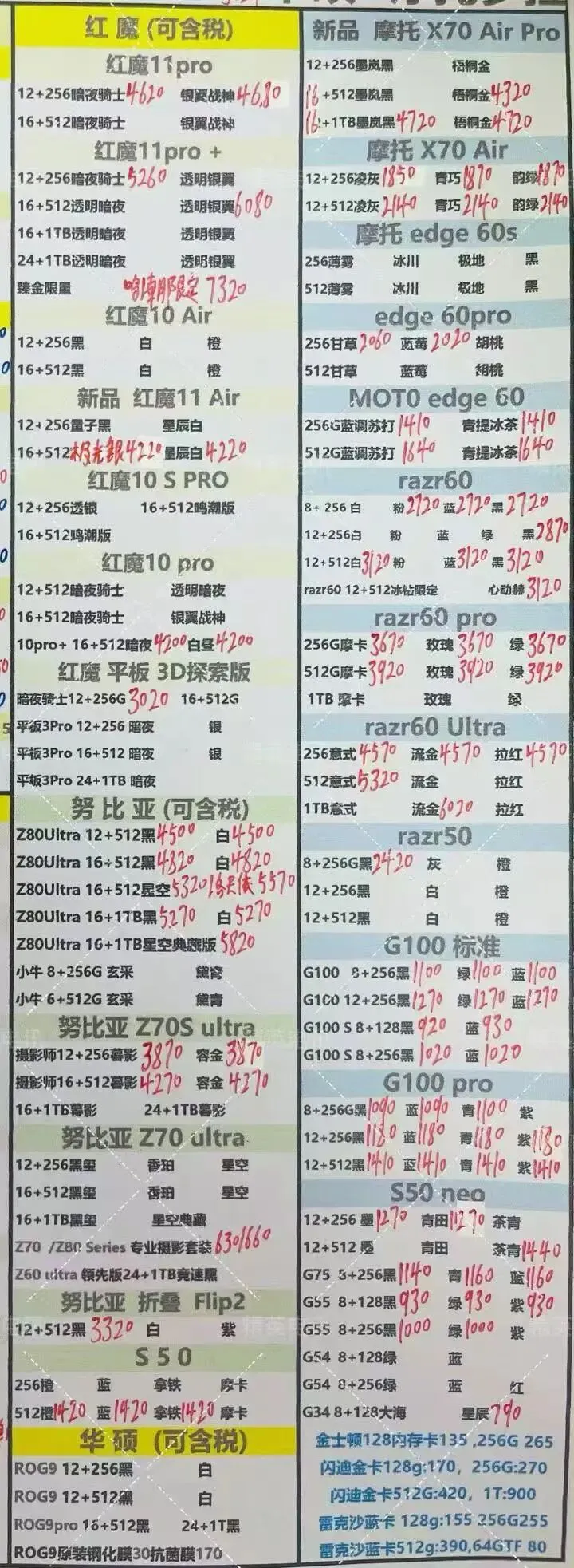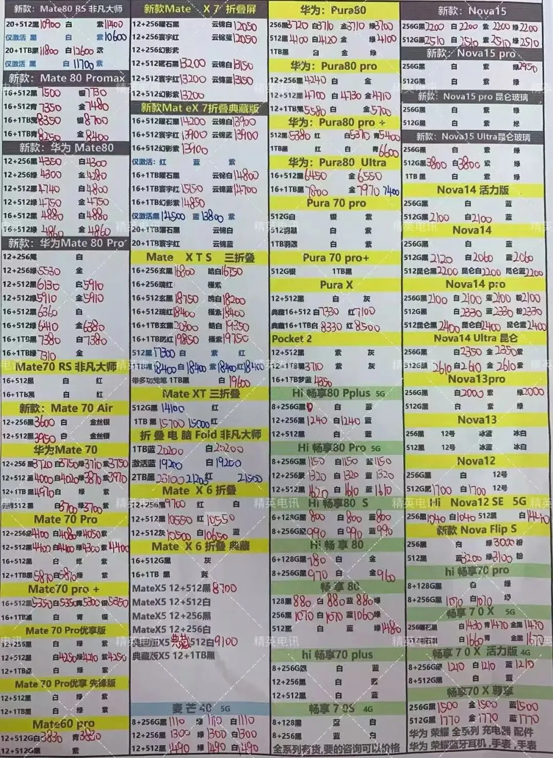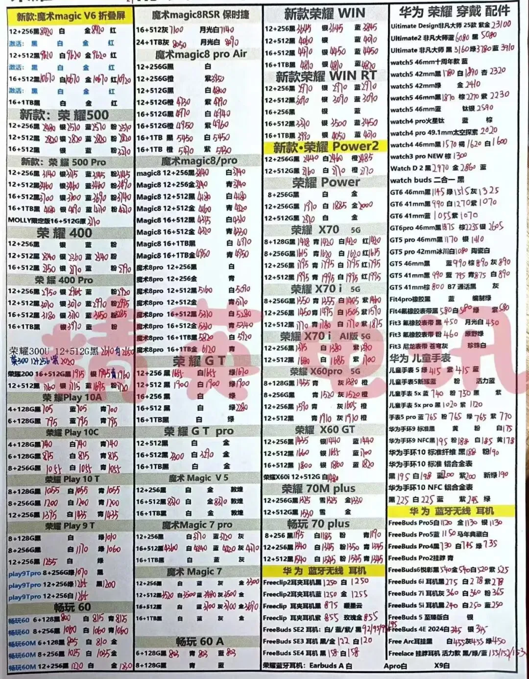 最新全新原封国行华为荣耀小米一加红魔等手机批发报价