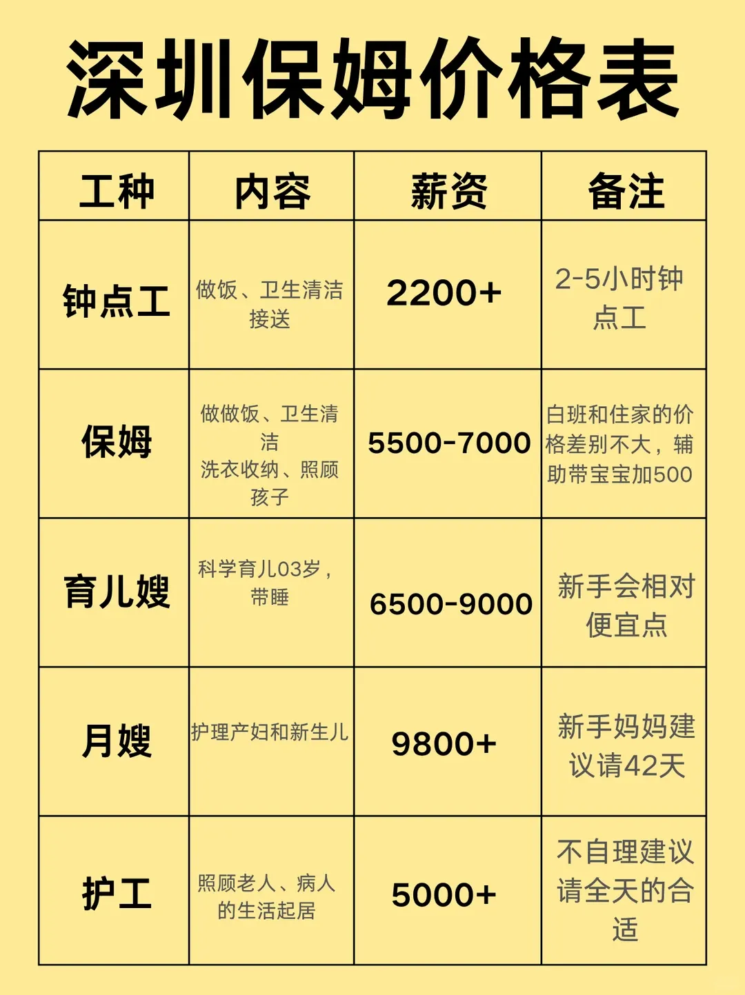深圳2026超全的保姆价格表~请阿姨该如何选快看过来啦!!!
