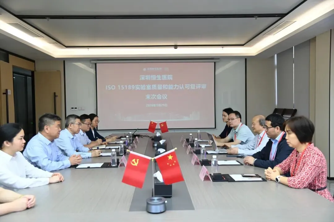 2026年3月27日至29日,中国合格评定国家认可委员会(CNAS)评审专家组一行五位专家莅临深圳恒生医院,对医学检验科开展了为期三天的现场评审工作。本次评审组由江苏省人民医院马建锋教授担任组长,来自青海大学附属医院李胜学教授、武汉市第三医院刘伟平教授、中山市人民医院王娟教授及深圳市罗湖区人民医院刘丽亚教授担任各专业技术领域评审专家。