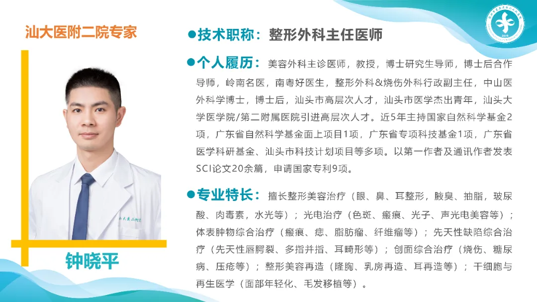 中心由25名专业医师的权威专家团队实力护航,其中二级教授1名、主任医师5名、副主任医师3名,博士12名、硕士13名,博导2名、硕导9名。中心开设唇腭裂序列治疗、耳廓整形再造、鼻综合整形、眼整形美容、乳房整形再造、私密整形等、毛发移植、瘢痕综合治疗、创面修复、光电治疗血管瘤综合治疗、轻医美轮廓重塑、生物医药抗衰、美容缝合、生活美容、皮肤病诊治等10余个极致整形美容亚专业。