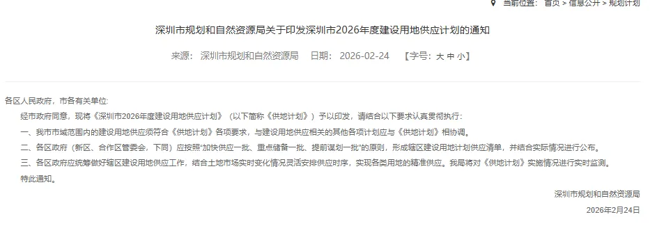 值得注意的是,2026年深圳首次将建设用地供应计划、土地整备计划及土地储备计划三项联动编制和发布。在土地整备计划中,全年计划整备的700公顷土地里,有440公顷规划为公共服务和基础设施用地。