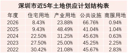 小编统计了深圳市2022年至2026年土地供应计划发现,深圳的土地供应结构发生了戏剧性的变化。