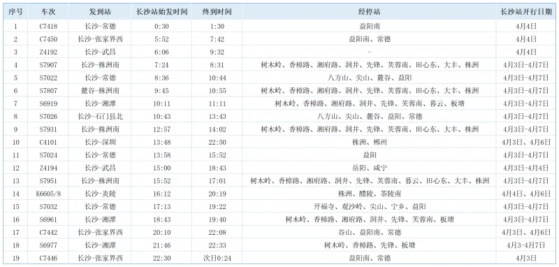 3月28日,记者从长沙火车站获悉,针对清明假期客流集中、出行时段集中的特点,长沙火车站计划在假期期间加开武昌、深圳、炎陵、常德、张家界西、石门县北等方向列车19列。其中4月3日至4月4日,特别加开3列夜间高铁列车,方便旅客错峰出行。