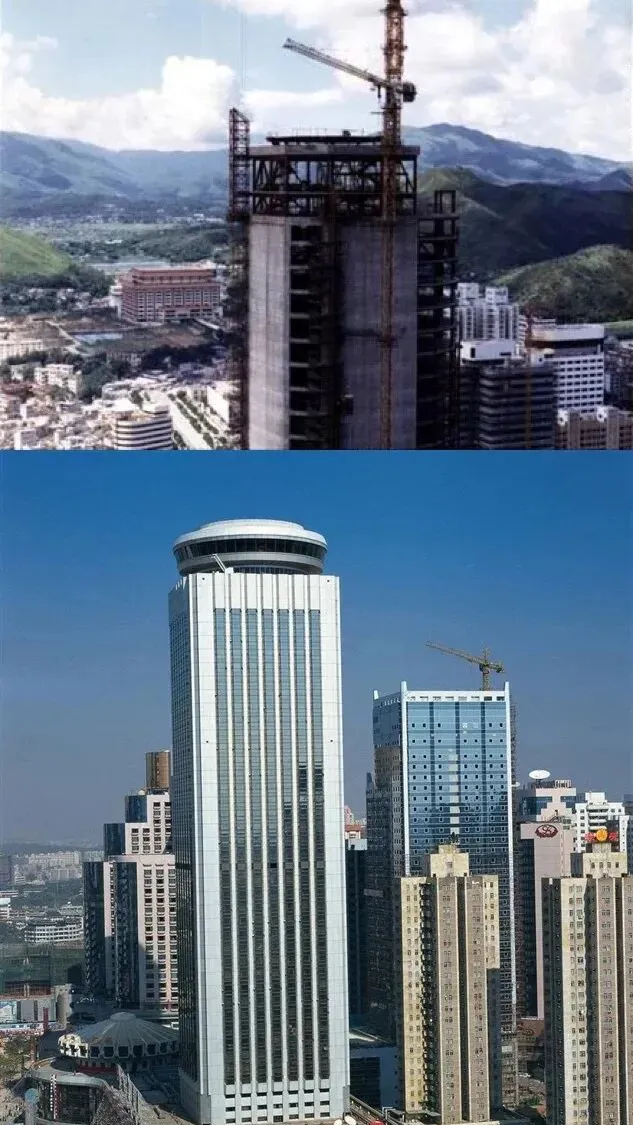 上面那栋高楼还在盖,国贸大厦,吊塔吊得高,混凝土外露着,底下稀稀拉拉几栋老楼,山也青,天还净,说是“三天一层楼”,现在回头想半天都难信,那会儿每家都爱讲楼下多快,哪家哪天又上一层,爸爸去工地送货,看师傅们汗一抹,“今天得赶出来,明儿就封顶”,现在楼再多再高,也没当年村里孩子围着工地看热闹的兴奋。