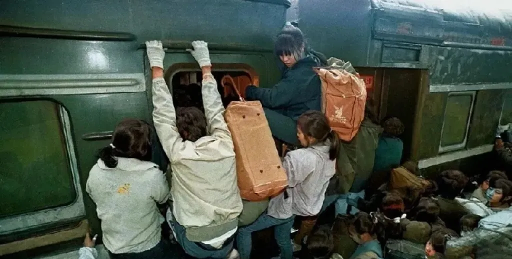 这张最带劲,几个人一手扒住车窗,一手拽行李,硬生生挤进火车,背包堆得像小山,女孩子脸蛋都是汗,那个时候“打工潮”刚起,老家人说,“谁要能进这火车,就像踏进了新世界”,爷爷看电视一边摇头:“你们现在坐高铁喝奶茶,以前连座都没得抢,只能窗户钻”,一车挤下两百个梦想,现在看每个人的表情都不一样,但劲头都拧成一股线。