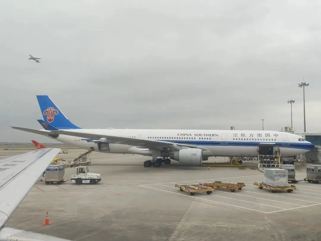 入座后,左侧停着一架南航A330-300