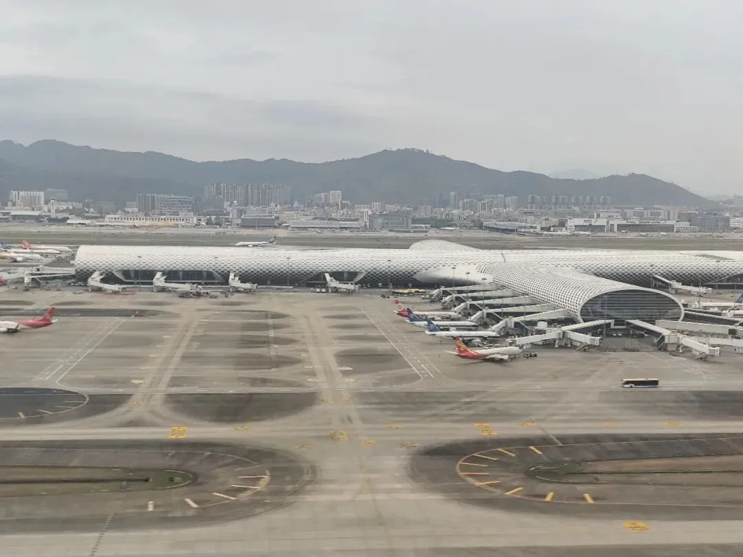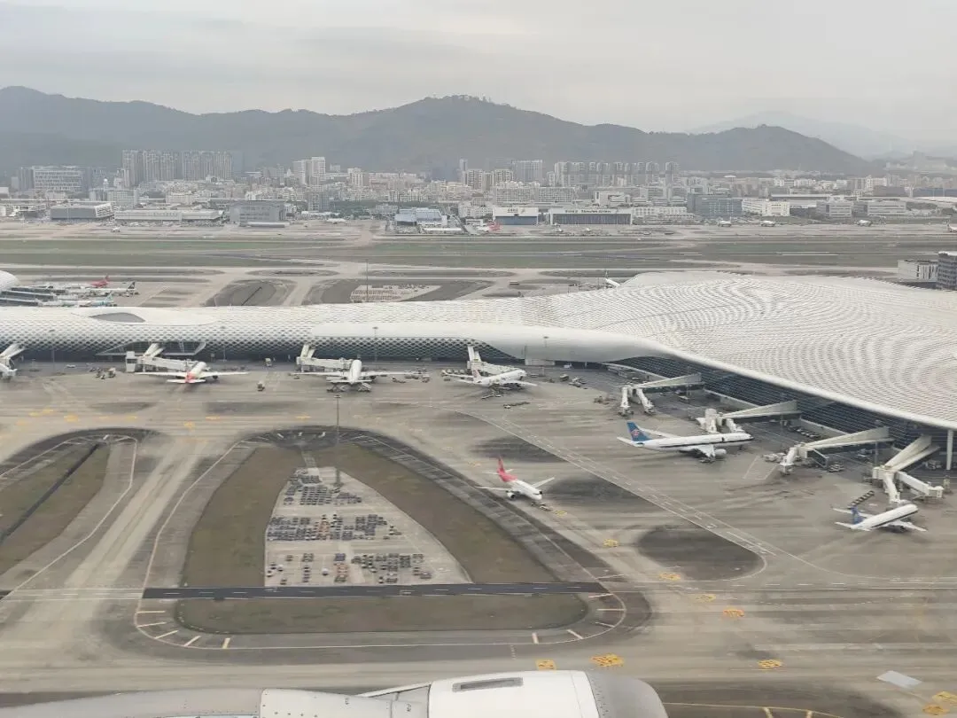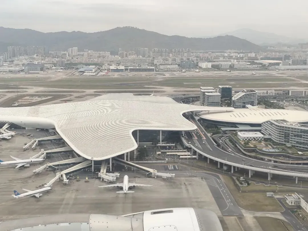 起飞过程中可清晰俯瞰深圳宝安机场 T3 航站楼。