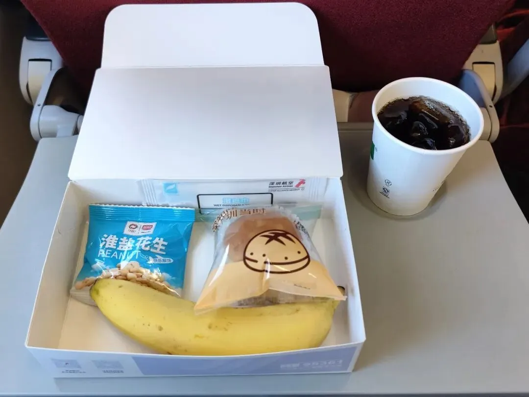 进入平飞阶段后,机组开始派发餐食。当天该航班在经济舱仅提供点心餐。由于这次飞行距今已有一年,个人印象难免有些模糊,起初一度怀疑是否实际提供过正餐而自己未拍照记录,毕竟航班时间点正好落在用餐时段。随后查阅了航旅纵横中的飞行记录后确认,当天该航班经济舱确实仅配发点心餐。考虑到本次航班票价本身较为优惠,这样的餐食配置也在情理之中,整体并无太多可苛求之处。