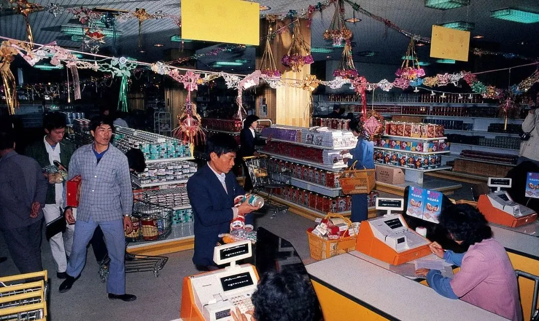 图里的商场,早些年深圳叫它友谊商场,也有说那就是最早的“超市”,货架子上摞满一次性杯子、奶粉罐头、巧克力罐头一条条,最吸引人的是收银台,老式收银机叮叮当当往纸条上敲数字,逢年过节还有彩条彩铃吊在顶上,大人往购物车里堆罐头,孩子在后头照猫画虎地学着推,爷爷摸着小票说,这家伙,一单一结,比以前一手一手换零钱靠谱多了,后来现在哪还有这么简单和稀罕的场面。