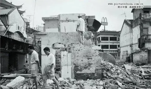 说起变化,其实拆迁场面最能说明问题,这堆瓦砾上站着三五个人,旧墙水泥一块一块往下掉,房后头还能看见麦当劳的M招牌,大马路边瞬间成了废墟,孩子扒拉着破砖头找能用的小零件,大人嘴里叨咕着“旧的不去新的不来”,谁能想到过几年这一片全变成高楼大厦,脚底的土地早不是原先的模样。