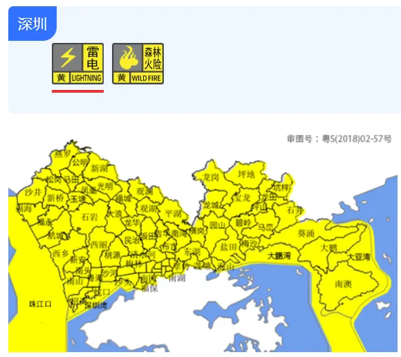 【深圳市雷电黄色预警信号】深圳市气象台于2026年03月29日18时30分发布全市雷电黄色预警信号,预计未来3小时深圳市将受雷电影响。市民停留在安全地方。