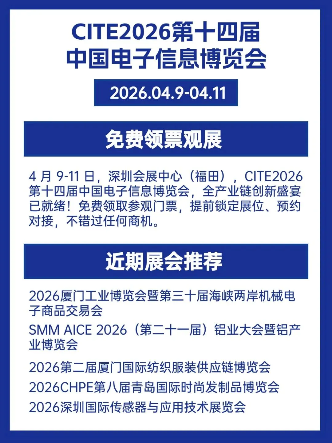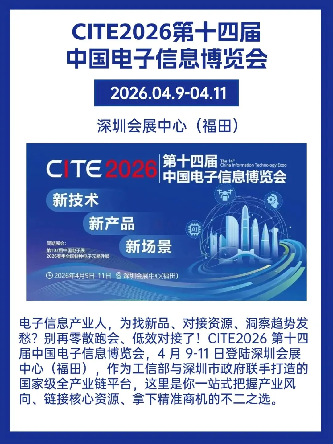 4 月 9-11 日,深圳会展中心(福田)CITE2026 第十四届中国电子信息博览会