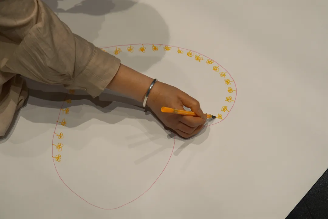 在音乐的引导下,大家将羽毛与丝巾融入五行的质感中: