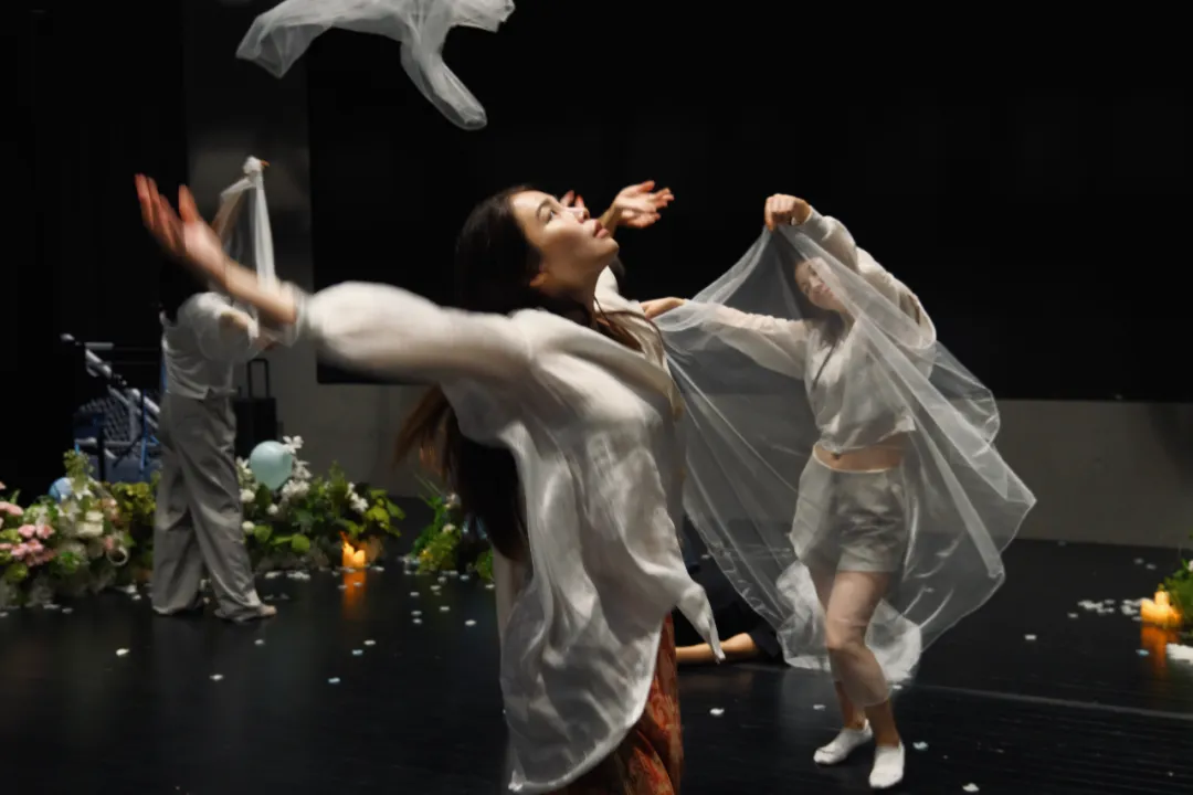 “当我跟着水的节奏舞动丝巾时,我感觉自己变成了一条河,那些堵了很久的东西,突然就流走了。”