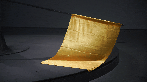 机械臂牵引着一面金色的旗帜,不断地、重复地在“圆”上画完美的圆形轨迹,周而复始、无始无终。