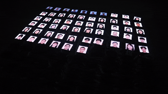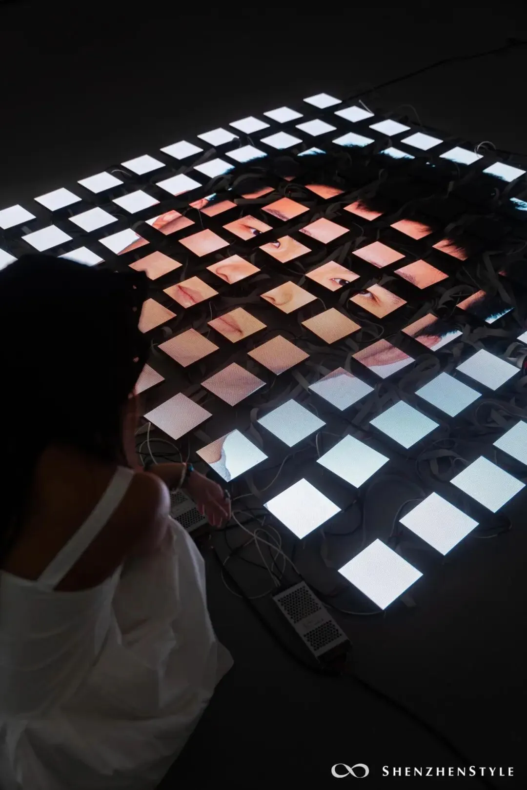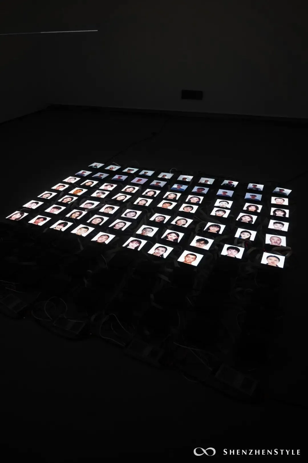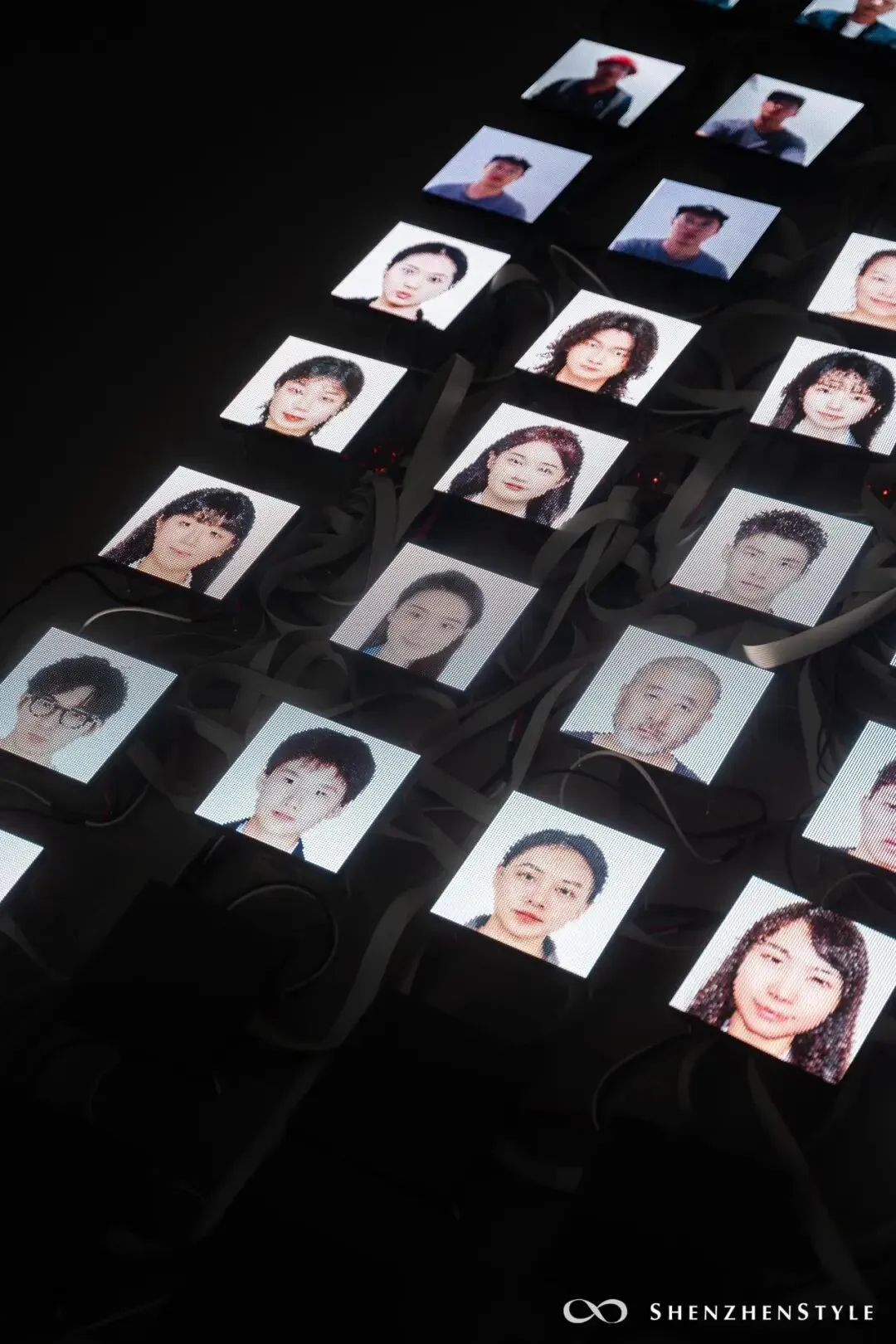 标准像的创作,来源于现场的观众。100 块 LED 屏,每张图像来自现场观众扫码授权后实时上传,在这里,每一位“你”都是艺术的参与者。