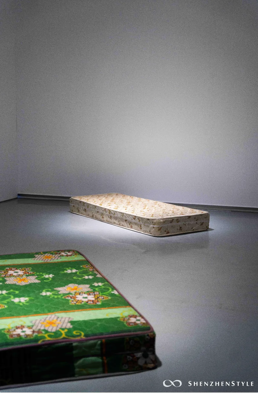 《音响床垫》、《有西洋雕塑的喷水池》、《被展开四次的黑白风景》等互动装置,则将观众的靠近或躺下动作视为完成作品的重要环节,映射个体与系统之间的真实处境——自主选择与系统运行相辅相成。